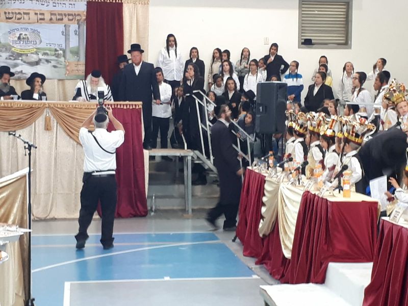 And then the great moment arrived, the moment that every Jewish child treasures in his heart until his final day, when he receives the Chumash into his hands. The children merited to receive the Chumash from the pure hands of our teacher the Rav shlit"a, as our teacher the Rav blessed each and every child that he should never cease from the words of Torah, and the children's choir, together with the orchestra, accompanied the child back to his place with the song 'May it be the will before Hashem that he will grow in Torah and in fear of Heaven...'