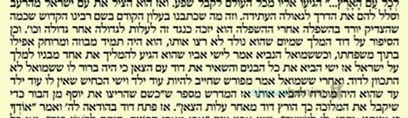 כמו שאומר רבינו שכמה שהצדיק יורד בהשפלה אחרי השפלה, הוא יזכה כנגד זה לעלות לגדולה אחר גדולה... וכמו שאומר המדרש, "כשם שהריצו את יוסף מהבור כדי שיקבל את המלוכה כך הורץ דוד מאחר עלות הצאן"."