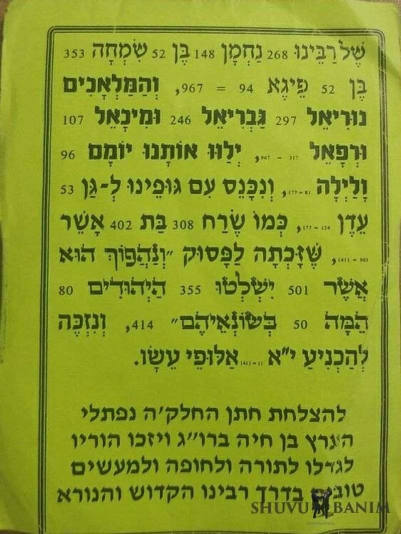 And grant me the mind of Rabeinu (268) Nachman (148) ben (52) Simcha (353) ben (52) Feiga (94) = 967.