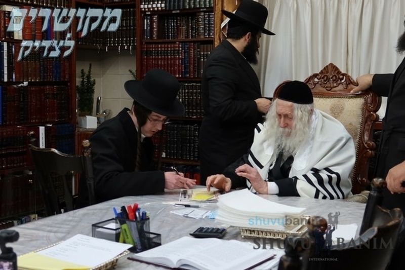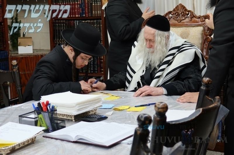 On Thursday, the 22nd of Shevat, Parashat Mishpatim, the Chassidic yeshiva students signed in the holy home of Moreinu HaRav shlit"a, as the Rav added his own signature to the certificate.