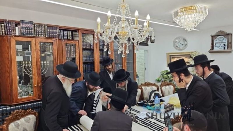 Last week, on Tuesday, the 2nd of Elul, an event for writing the last letters of a Torah scroll was held at the home of Moreinu HaRav Eliezer Berland shlit"a. The Torah scroll was dedicated to the Beit Midrash of Breslov Chassidim "Meor HaNachal" in the city of Beit Shemesh.