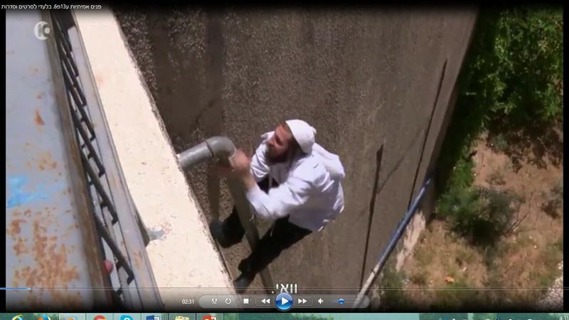 Strangely, Amnon Levy didn’t inform the viewers of this small problem with Nachman Shalom’s story, and also didn’t invite Nachman Shalom to show him how he’d ‘climbed the pipe’ on location outside the Rav’s former home, in Beitar Illit.