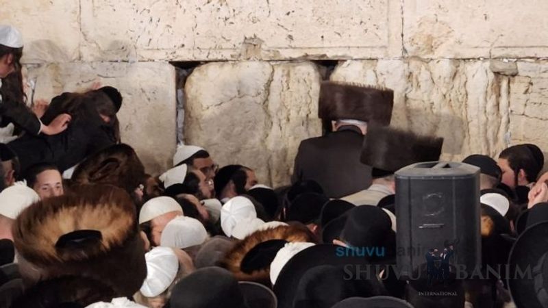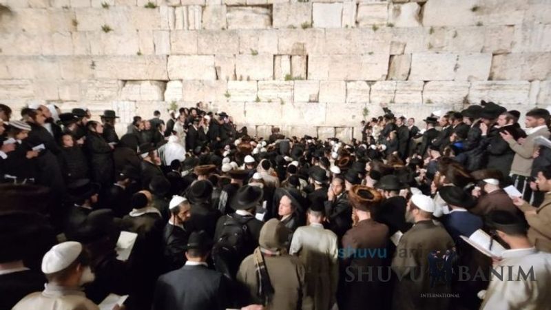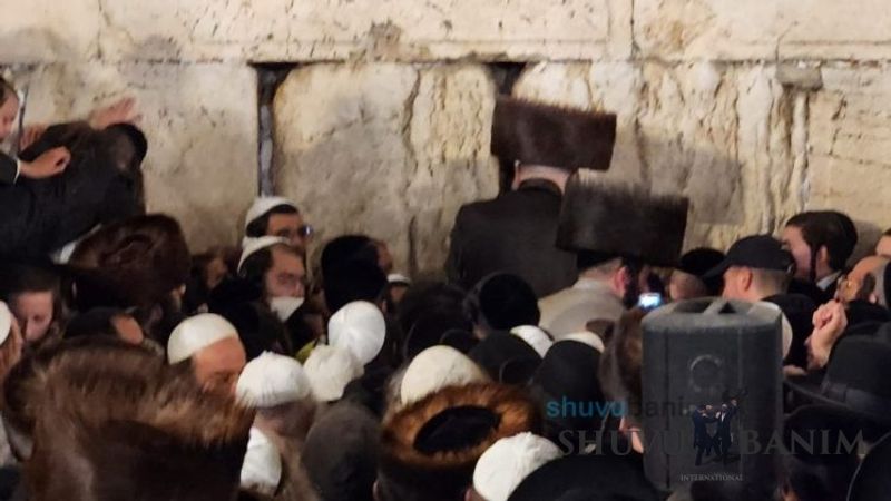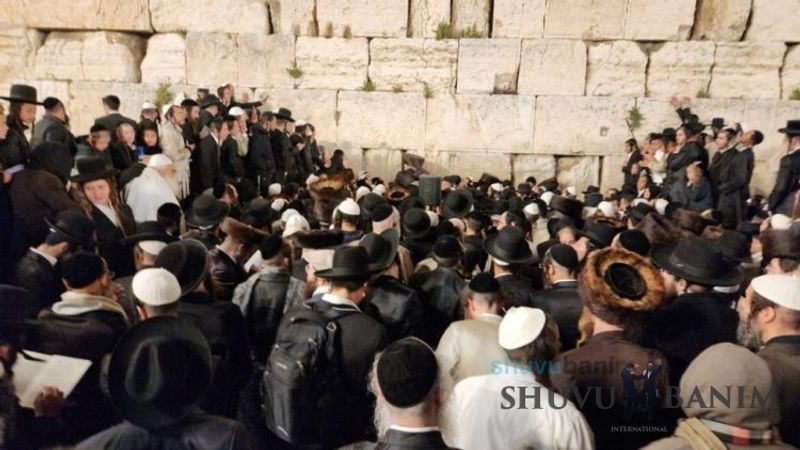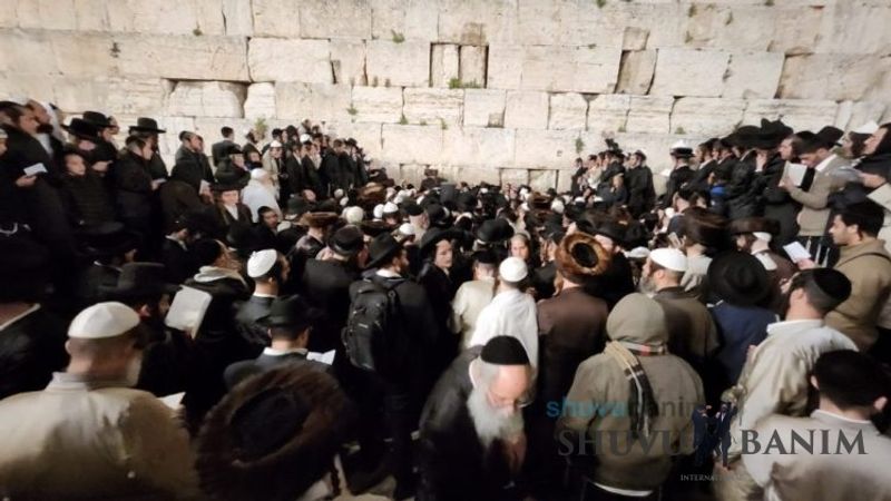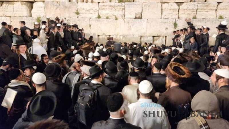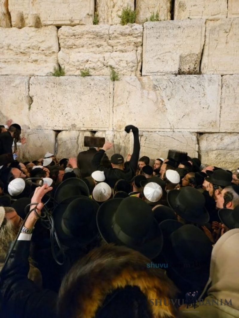 Moreinu HaRav shlit”a arrived at around 3:40 am and said four Tikkun HaKlali’s with great vitality and fervor. After the Tikkun HaKlali’s, he exited the Kotel plaza with singing and dancing, accompanied by thousands of his students. This year, Moreinu HaRav shlit”a reached with his car all the way to the ramp down to the men’s section of the Kotel, until the throngs of people made it impossible to continue any further. Likewise, in order to allow the entire public to see the Rav shlit”a, he stood on a special platform allowing his holy visage in front of the remnants of the Temple to be visible throughout the Kotel Plaza, and even beyond. Moreinu HaRav shlit”a left the Kotel at close to 4:40 am as the entire Old City was closed off to traffic, so that he could reach his holy residence quickly without further delay. A number of minutes after returning, he emerged onto his balcony for the central Shacharit of Chol HaMoed Pesach.Photo Gallery: