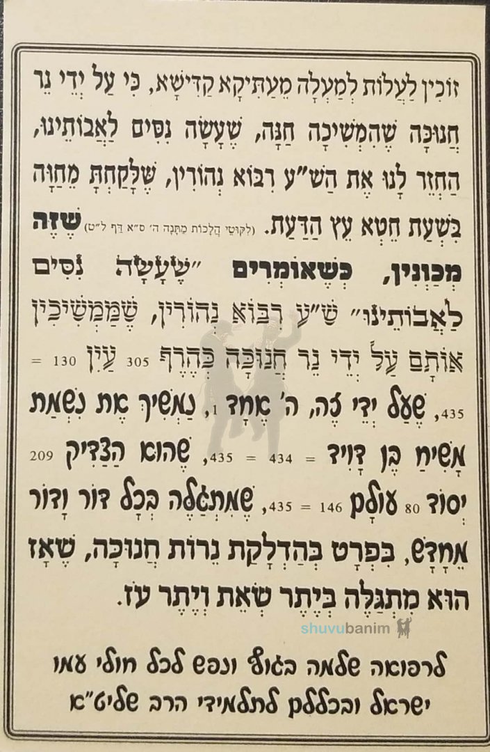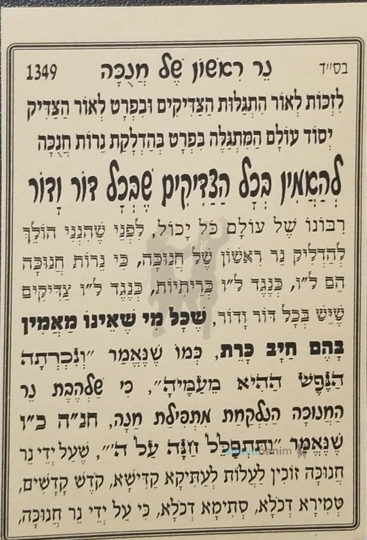 Prayer for the First Night of Chanukah from the Esteemed Rabbi Eliezer Berland shlit"a