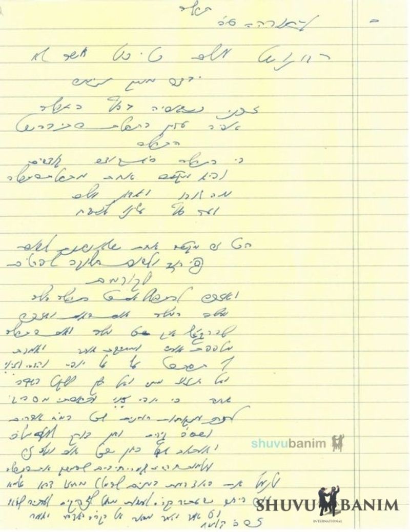 Ribbono Shel Olam – Master of the World, Who can do everything, and that nothing can impede [Your] purpose from You, let me merit that when I will be at the end of prayer, I will still be at the first word of prayer, because prayer is Holy of Holies, and it is one solid entity, from the beginning of the prayer, “Ma Tovu” and “Adon Olam,” until the end, “Aleinu LeShabe’ach.” It is all one solid entity that cannot be fragmented or divided into details and entities. And may I merit to pray the entire prayer, word-for-word, letter-for-letter. And may I merit to feel how each word and letter of the prayer embraces me and hugs me, and says to me, “Look at me, at my beauty, splendor, and radiance, and do not leave me, and do not go gleaning in another field, for my beauty, radiance, and magnificence are enough to give spiritual delight and vitality to all 248 organs and 365 sinews, and there is no need for any more words or letters.” However, because each letter and word are entirely new worlds, we must continue with the prayer, and stick our fingers in our eyes and flee from the visions of that world. And this is the meaning of [what is said,] that in the future, the Holy One Blessed is He will make a circle for the Tzaddikim in the Future World, and each one will point to the Holy One Blessed is He with his finger and say, “This is Hashem; we hoped for Him.”