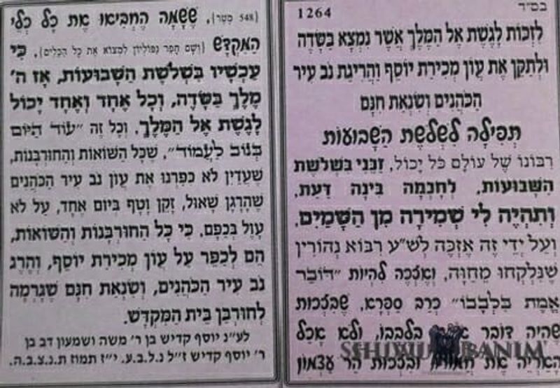 Ribono shel Olam -- Master of the World, All-Powerful, let me merit during the Three Weeks to chochma, binah, and da'as -- wisdom, understanding, and knowledge; and let there be protection for me from Heaven. and through this, let me merit to the 370 ribo (3,700,000) lights that were taken from Chava, and let me merit to be "and he speaks truth in his heart" like Rav Safra, who in the merit of speaking truth in his heart, the lion didn't eat his donkey, and in the merit of Mount Atzmon, where they hid all the Temple vessels (and there Napoleon dug in order to find all the vessels), because now, during the Three Weeks, Hashem is the King in the field, and each and every person can approach the King, and all of this is "still today, he will remain in Nov," because all the holocausts and destructions...because we still haven't atoned for the sin of Nov the city of Kohanim, which Shaul slaughtered, elder and child, in one day, for no sin in their hands, because all the destructions and holocausts are to atone for the sin of the selling of Yosef and the slaughter of Nov, the city of Kohanim, and wanton hatred, which caused the destruction of the Temple.