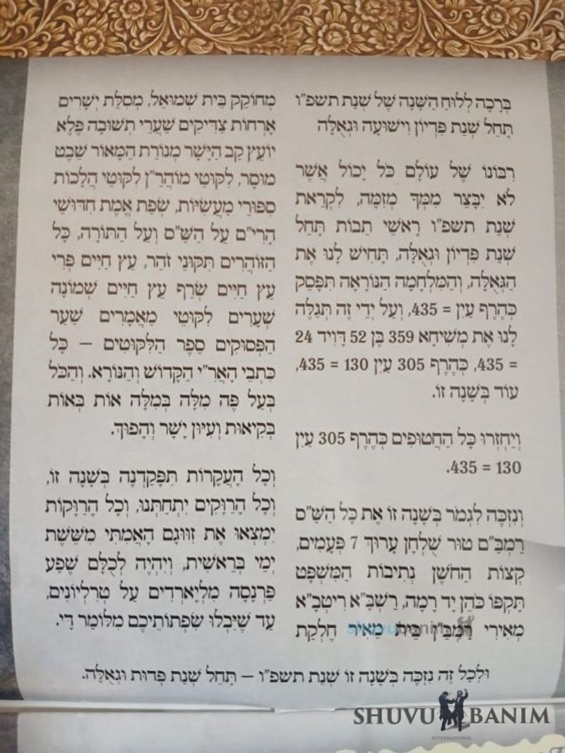 Blessing for the calendar of 5786
