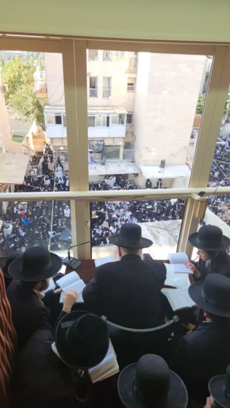 On that very day when evildoers entered His Sanctuary, Moreinu HaRav shlit”a came to the Shacharit prayer without tallit or tefillin at exactly 4:30 AM. He began with the verses from Tikkun Chatzot that are customarily recited on days when Tachanun is omitted, such as Tisha B’Av, including “Kara Alai Mo’ed,” and in the tune of “Ki Nicham Hashem Tzion,” he extended the recitation for about two minutes. After this, Moreinu HaRav shlit”a began the Shacharit prayer in the regular Nusach, starting from the Morning Zemirot, Korbanot, Pesukei D’Zimrah, and the blessings of Kriyat Shema. The niggun of “Hoshiya Et Amecha,” lasted about five minutes, and “Lamnatze’ach BiNginot Mizmor Shir,” lasted about fifteen minutes. After the Amidah, Moreinu HaRav shlit”a read from the Torah portion “Ki Tolid Banim,” followed by the haftarah “Asof Asifeim.” Immediately after the haftarah, Moreinu HaRav shlit”a stepped down from his place. At 6:52 AM, Moreinu HaRav shlit”a sat on the ground and began to lament in weeping and mourning over the destruction of the Temple and the pain of the Shechinah (Divine Presence). In the large plaza outside the central courtyard sat over a thousand members of our community—men, women, and children—crying and mourning bitterly over the catastrophe of the destruction of Jerusalem and the concealment of the Tzaddik, which is the source of all calamities throughout the generations. “Every generation in which the Temple is not rebuilt in its days—it is as if it was destroyed in its days.” Due to the severe heatwave that struck the Holy Land on Tisha B’Av, the gabba’im of the Beit Midrash rented portable air conditioners for the large crowd that came to mourn Jerusalem together with Moreinu HaRav shlit”a. It should be noted that due to the overwhelming number of people, despite this year’s kinot being held in the large outdoor plaza next to our Beit Midrash, the crowding was still strongly felt. Before the kinah “Arzei HaLevanon,” Moreinu HaRav shlit”a stood up, and from then on—throughout nearly two full hours of kinot—he remained standing. During the recitation of the kinot, Moreinu HaRav shlit”a gave several shiurim: as mentioned, before the kinah of the ten martyrs—“Arzei HaLevanon”—he mentioned the execution of Rabbi Akiva; before the three kinot about the decrees of 4856 (1096 – the Rhineland massacres); and before the kinah “She’ali Serufah BaEsh,” composed by Maharam of Rothenburg, the Rav spoke at length about the great loss of thousands of commentaries whose letters ascended in fire never to return. He also gave a shiur before the kinah of Rabbi Yehudah HaLevi, “Tzion HaLo Tishali.” The kinot were said with tremendous arousal, especially the last kinah, “Eli Tzion VeAre’ha,” which Moreinu HaRav shlit”a chants every year with a rousing melody, caused him to choke from sobbing. After nearly three hours, at 9:47 AM, Moreinu HaRav concluded the kinot and sat again on the ground for a second reading of Megillat Eichah, which was shorter than the night before—lasting precisely fifteen minutes. At the conclusion of the reading, Moreinu HaRav finished the prayer, instructing that everyone should now go to the Kotel until midday, and afterward, travel to the graves of the Patriarchs in Hevron. Moreinu HaRav shlit”a entered his holy home at 10:05 AM, after five and a half hours of Tisha B’Av prayers.“Renew our days as of old”