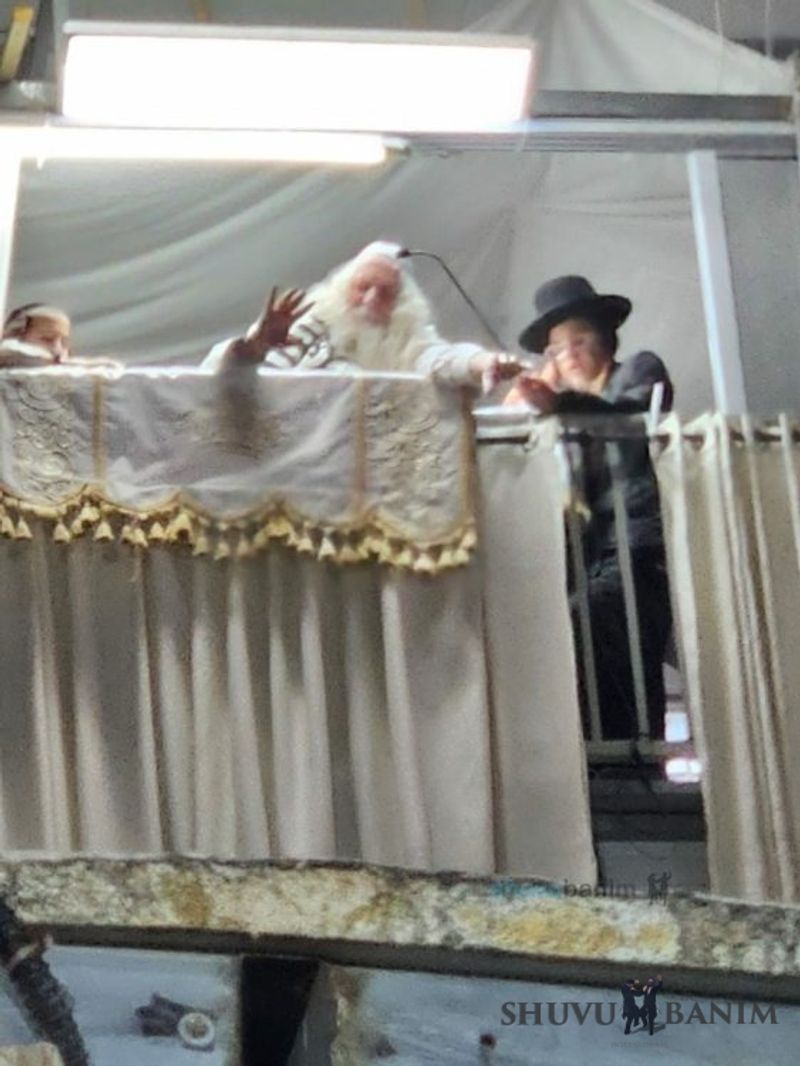 During the repetition, the Rav shlit”a sang at length the niggun, “VeKarev Pezureinu Mibein HaGoyim -- Bring close our dispersed ones from among the nations” for around five minutes with fiery fervor, followed by the song “Vehavi’einu LeTzion Irecha BeRina -- Bring us to Your city, Zion, in song,” which lasted for more than fifteen minutes. After close to a half-hour of Musaf, the Rav shlit”a concluded the repetition, finishing the rest of the prayer according to its order. From “Kavei El Hashem,” he gave over a brief shiur and then continued with Aleinu Leshabeach, Ane’im Zemirot, and Adon Olam. After all of this, he even said a Tikkun HaKlali. Afterwards, he gave over another shiur of around five minutes, like the words of the Living God, during the saying of the morning Kiddush. He then entered his home at 9:57 after five and a quarter hours of prayer on Shabbat Chol HaMoed, together with Moreinu HaRav shlit”a.