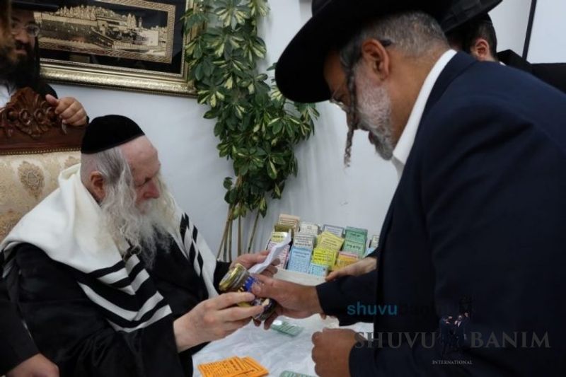 Every day, some 500 people received the joyful message that they are invited to come to Rav Berland's home. From 5:30 pm until Ma'ariv, they entered one after the next to receive from the Rav's holy hands a jar of honey. In addition, with a shining face and the Rav's great love for each Jew as he is, he offered advice and blessings to each one according to his requests and needs. It's worth noting that to ease entering the Rav's home, which was carried out with amazing order and swiftness, a new door to the Rav's home was built at great expense, especially for the benefit of the visitors. Throughout all the hours of the event, it was impossible to miss the great excitement and joy on the faces of all those who came to the Rav's home, from all colors of the spectrum.Photo gallery from the event: