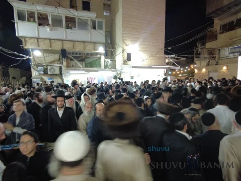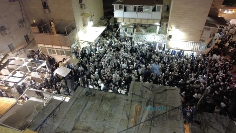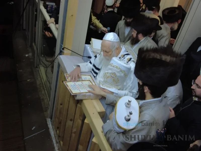 Starting at 11:00 PM, throngs of Am Yisrael gathered and came to the courtyard of our Beit Midrash, as the royal orchestra began to play, featuring the well-known singer R’ Akiva Groman, accompanied on the keyboard by the wondrous musician R’ Izik Eisenstadt, and above all, the artist of emotion, stirring hearts with his clarinet – R’ Avraham Balti. And so, hand in hand, shoulder to shoulder, foot after foot lifted, everyone together became one great flame of joyous dancing in honor of the Torah. Around 2:00 AM, it was announced that Moreinu HaRav shlit"a had given instructions to start the hakafot shniyot, and he would also join later on. As per his instruction, those leading the hakafot while holding the holy Torah scrolls recited the verses for opening the Ark and the verses of the first hakafah. Now the hakafot officially began with the singing of "Torat Hashem Temimah…" Once again, circles upon circles, the feeling was that the dancing lifted everyone a handbreadth above the ground. So went the second and third hakafot. Toward the end of the third hakafah, at exactly 3:08 AM, Moreinu HaRav shlit"a emerged in his majestic splendor for the hakafot shniyot from the balcony of his home. He immediately went to his holy place, recited the verses of the fourth hakafah, "Lovesh Tzedakot Aneinu B’Yom Kor’einu," and opened with the singing of "Urah Kevodi Urah HaNevel V’Chinor A’irah Shachar…" At this stage, there was no one who did not rise, no one who did not dance, and no circle that did not open. "B’cha Rabbeinu Nagilah," songs of Uman one after the next with tremendous longing and yearning for the tziun of Rabbeinu. Then, as our Sages said: "Paka igra" – the roof burst open – so it was fulfilled in the hakafot shniyot, in which, as mentioned, multitudes upon multitudes from all communities, circles, and sectors of Am Yisrael participated, with stormy circles of Chasidim alongside working people, Sephardim standing shoulder to shoulder with their Ashkenazi brethren, Chasidim of Toldot Aharon alongside settlers, and Litvaks alongside the elders of our community, all dancing, skipping, and twirling with all their might in honor of the Torah, with Moreinu HaRav shlit"a himself conducting it all, dancing with endless renewal, as if Simchat Torah had just begun, all this after a holiday filled with hours upon hours of continuous dancing and prayers. Moreinu HaRav shlit"a initially danced in a circle with family members and close associates, holding the holy Torah scroll that was written for him and which brought about the release of the hostages (see the separate article on Hoshana Rabbah). After several rounds, he turned to the crowd with joy and delight, clapping his hands and dancing again and again with immense joy, with fiery movements before the entire congregation of Hashem, rejoicing and exulting with great strength and might! One hakafah followed another, as Moreinu HaRav shlit"a did not skip any customary piyut – "Ein Adir KaHashem," "VaYesoiu Lecha L’Avdecha," "HaMelucha V’HaMemshala Tzu Vemen…" and more, all with song and joy, in gladness and jubilation! In the sixth hakafah, the important bachur Yosef Arnesti, who is known as a regular musician during visits to the Tomb of Yoseph HaTzaddik, stood at the musicians’ stand and led the thousands in singing "B’Zchut Yosef HaTzaddik … Yimale Mishaloteinu B’Midah Tovah, Yeshua V’Rachamim." "Rachmana Idkar Lan Z’chutei D’Yosef Tzaddika…" the masses jumping! When the seventh hakafah, the final one, arrived, it seemed that there was no person in the world who could possibly conclude this holy night, these powerful dances, and this tremendous joy. Instead of singing "Seu Shearim Rasheichem," they began singing "Atah Bechartanu MiKol HaAmim…" not ceasing to dance for a moment! One of the most beautiful moments was when R’ Chaim Reicher burst into the singing of "Adir Kevodo," with the entire vast crowd responding with a roar, "Hod V’Hadar," and the crowning moment at the end of each section of the piyut, when the singer shouted "Simchat Torah…" and the entire crowd responded, "Yesh! Yesh!" R’ Chaim added several of his own sections, which further elevated the fiery joy of holiness: "Shuvu Banim… Yesh! Yesh!" "Moreinu HaRav Yesh! Yesh!" At 4:55 AM, they began singing "Seu Shearim Rasheichem." The sponsor of the seventh hakafah stood beside Moreinu HaRav shlit"a with the new Torah scroll, and here the Rav began the piyutim of the Middle Eastern communities, "Agadelcha…" "A’ufa Eshkona…" again and again with immense vitality and fervor! These uplifting songs, written by the Kabbalists and great Sages of Israel of previous generations, served as the most moving seal for this entire holy night, for the exalted Simchat Torah, and for the writing of good decrees for all of Israel for a good and blessed year with tremendous salvations without end! At exactly 5:10 AM, three hours after the start of the hakafot, Moreinu HaRav shlit"a signaled with his holy hand, recited Kaddish, and began the Shacharit prayer for Isru Chag, starting with Tikkun Chatzot and the morning Zemirot. At the conclusion of the morning Zemirot, he began reciting Korbanot. As is the custom of the Tzaddikim, the foundations of the world, who eagerly awaited to don tefillin with desire and sublime joy after the seven days of the holiday, at the precise time for tallit and tefillin, Moreinu HaRav shlit"a blessed over his tallit and adorned himself with tefillin, with the joy of the mitzvah clearly visible on his face! Although this was a regular weekday Shacharit prayer, with the Rav shlit"a, there is no such thing as regular, especially since we don’t merit every day a Shacharit prayer in his holy shadow. Moreover, everyone was still wearing their holiday garments, which still gave a taste of the holiday. Of course, despite all of Simchat Torah and the minimal sleep we merited since the eve of the hilulah of Rabb