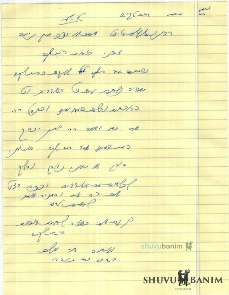 The prayer in the Rav's holy handwriting:
