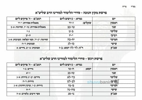 טבלת סדר הלימוד בגמרא וברמב"ם שסידר הגה"צ הרב אליעזר ברלנד שליט"א