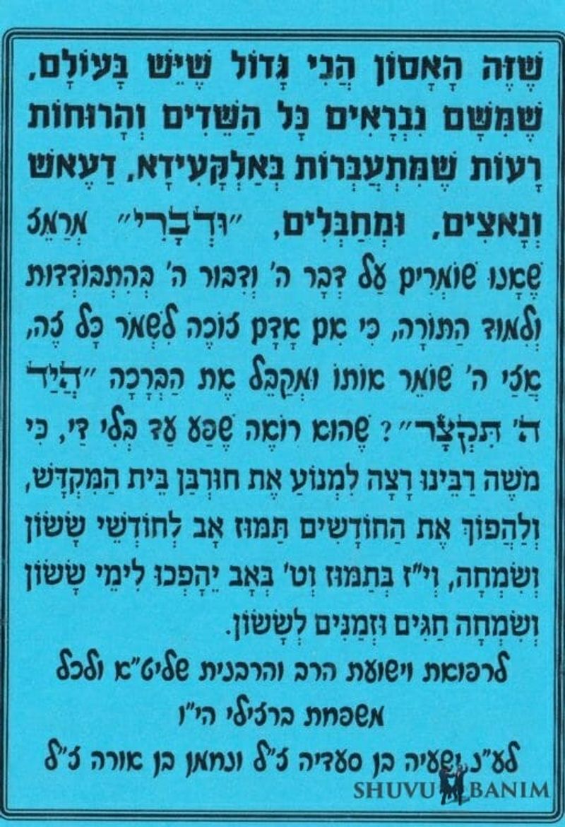 Give us the merit to receive from Your full, open, holy and generous hand, from the reisha delo ityada.“Now you will see whether My word comes to pass, or not.” ‘You will see’ hints to shmirat eynayim (guarding the eyes), “yikracha” (comes to pass) hints to the protection from keri (spilled seed), which is the biggest disaster that exists in the world. From there, all the demons and evil spirits are created, that are then imbued into Al Qaeda, and Da’esh (ISIS), and the Nazis, and terrorists. And ‘debri’ (My word) hints that we should be guarding the word of Hashem, and to speak to Hashem in hitbodedut (personal prayer), and to learn the Torah. Because if a person merits to do all this, then Hashem will guard him, and he will receive the blessing of: