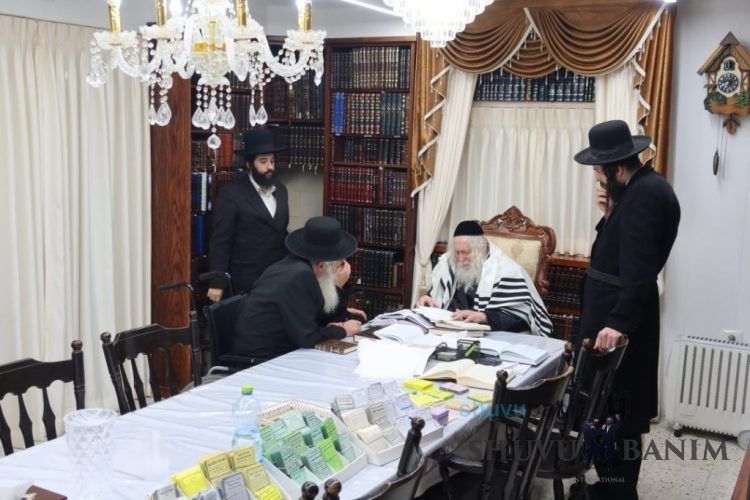 Moreinu HaRav Eliezer Berland shlit"a giving a shiur at his home in Jerusalem for Melaveh Malkah