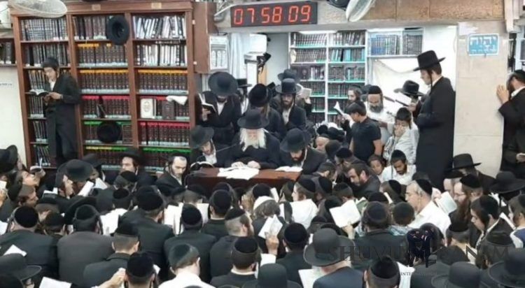 Towards sundown, at 7:15 pm, the Rav shlit"a came out for the Minchah prayer crowned with Tallit and Tefillin, beginning the song "Yehei Rava Kadamach" in opening the Ark. Afterwards he read "Veyachel Moshe," said the Thirteen Attributes of Mercy, and read the Haftarah "Dirshu Hashem BeHimatzo." After Minchah, the Rav immediately began Maariv, followed by a shiur and the songs of Rebbe of Nachman of Breslov for a few minutes, entering his home at the conclusion.