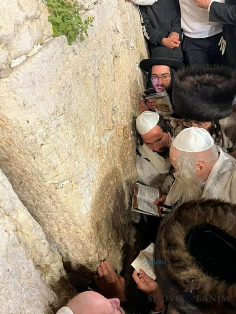 As he is accustomed to do every year and after two years of imprisonment when he couldn't ascend for the festival, our Rebbe Rav Eliezer Berland shlit"a ascended in the early morning hours on Thursday, the eve of the 7th Day of Passover to the remains of our Holy Temple to pray along with hundreds of his Chasidim.