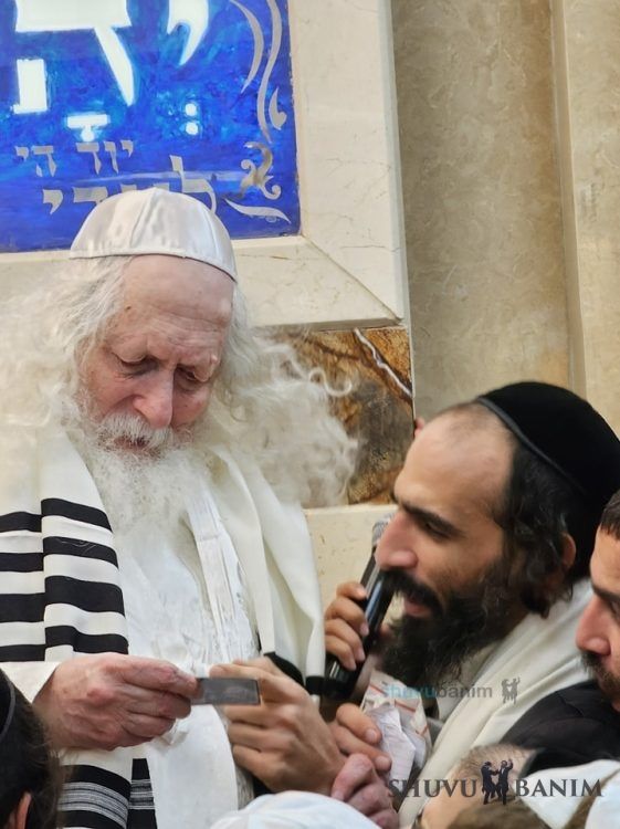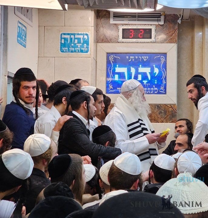 âTorah from Sinaiâ â Also this Shabbat â the Shabbat of Kabbalat HaTorah (receiving of the Torah) â we merited to pray with the Gaon and Tzaddik Rabbi Eliezer Berland shlitâa. For nearly nine hours we merited to be in the presence of Moreinu HaRav shlitâa.  On Friday afternoon, the Rav came out to Mincha shortly before candle lighting (4:28 pm). Then came Kabbalat Shabbat with âLecha Dodiâ lasting over 42 minutes with unmatchable pleasantness. We must note that over a period of an hour and a half, throughout Minchah, Kabbalat Shabbat, and Lecha Dodi, nearly a thousand people â men, women, and children â stand under the open skies with drops of rain falling on Shabbat evenings. After Kabbalat Shabbat, which lasted about an hour, the Rav continued with Maariv and the Zemirot (songs) of Shabbat evening. After nearly two and a half hours, he returned to his holy home at 6:40. On Shabbat morning at 4:30, the Rav shlitâa entered early for prayers, some two hours before sunrise. With Shacharit lasting some two hours, the Rav began with Tikkun Chatzot, the morning Zemirot, Korbanot, and Pesukei DâZimra with great vitality, all the niggunim (melodies) with fervor, even though during this Shabbat, the Rav was feeling weak, and he sped up the niggunim slightly. Still the shortest prayer at Shuvu Banim lasts for many hours. Every niggun was 3-4 minutes. The Shabbat brought joy to the souls! The Rav stood for the Amidah at the minute of sunrise at 6:30, some two hours after having begun the prayers. Afterwards, the Rav shlitâa led the repetition of the Amidah. The high point of the Shabbat was, of course, the reading of the Ten Commandments. Moreinu HaRav shlitâa began the Torah reading at 6:50 in the morning, as one by one, those with Simachot or Yarhzeitâs  came up for their Aliyah. Then when they reached the Aliyah of the Ten Commandments, Moreinu HaRav shlitâa was honored to ascend to the Torah. After the blessings, the entire giant congregation â men, women, and children -- were silent, and a bird did not chirp, nor did a baby cry. Moshe Rabbeinu of the generation spoke and God replied with a Voice â âAnochi.â There is no describing the exaltation and awe during the reading of the Ten Commandments. The reading of the Torah was concluded by the Bar Mitzvah boy Shmuel Izik Levit, who also finished the Haftarah of âChazon Yeshayahuâ with a clear and resonant voice. Shortly before 8:00, they stood for Musaf. After Musaf, the Rav shlitâa continue the prayer in order, from âKavei el Hashemâ until the Tikkun HaKlali. After the completion of the Ten Psalms of Rebbe Nachman with a pleasing melody, the Rav shlitâa said Kiddush and gave over words of the Living God in which he spoke about Davidâs desire to conquer all the way to Rome, and about the mystery of the distinction between the verses, âWho will bring me to the besiege (matzor) city,â and in another place it is written, âWho will bring me to the fortified (mivtzar) city.â At 9:00 am, the Rav shlitâa entered his home after four and half hours of prayer. At sunset, the Rav shlitâa came out for Mincha of Shabbat Kodesh, and afterwards the Third Shabbat Meal was held. For a number of minutes, the Rav shlitâa gave out Shirayim. After that, he began the Zemirot of the Third Meal in his holy way for some twenty minutes, and after this, he sang âYa-h Ribon Olamâ for about fifteen minutes. At the conclusion of the song, he said Zimun on a cup and began his weekly shiur on the book âPele Yoetz,â in the section on the holiness of man. Before Maariv, they sang âLamnatzeach Binginotâ for a half hour (!). After that was Maariv with songs and niggunim, followed by Havdalah with the singing of âLaâYehudi Hayta OraâŚâ In Melaveh Malka, he gave over a shiur in âChayei Moharan.â After this, he entered his home at 8:00 pm, after three hours that we merited to be together with him. Below is a photo gallery from Motzaâei Shabbat (photos courtesy of the Whatsapp group: âHaRav Berland Tzaddik HaDorâ):