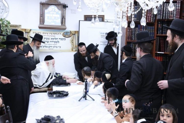 Moreinu HaRav Eliezer Berland shlitâa received in his home children from the Talmud Torah Nechamat Tzion âBreslov Shuvu Banim.â