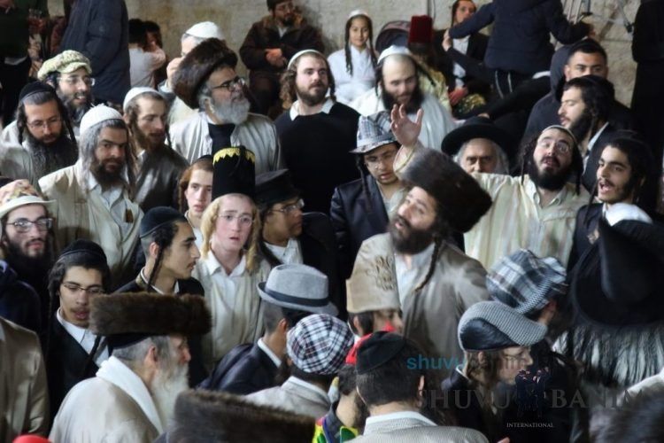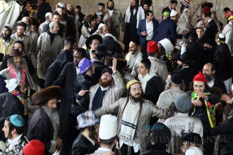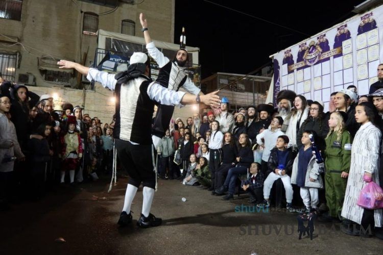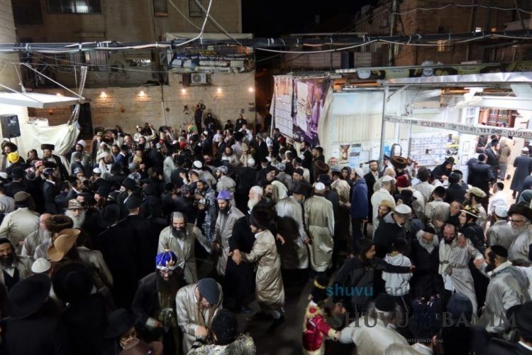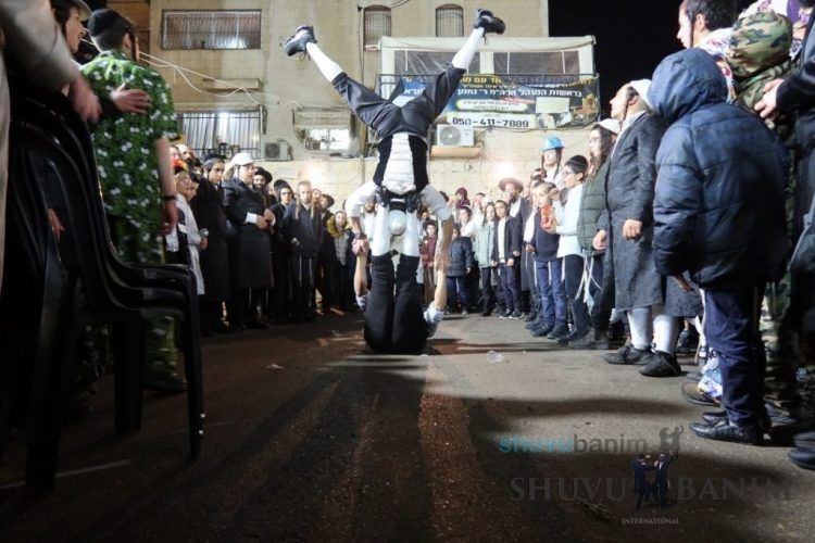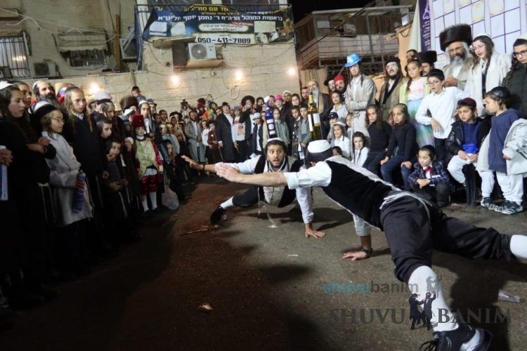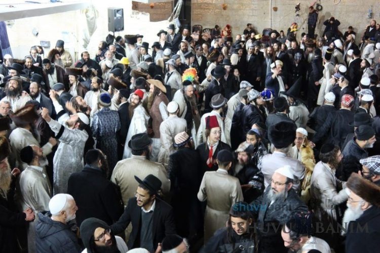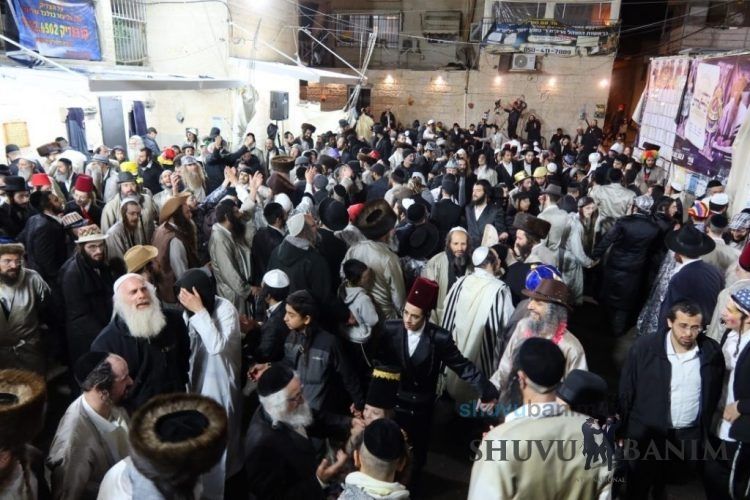 Everyone knows that anyone who wants to experience the true joy of Purim should go to the courtyard of the kingâs palace â our Beit Midrash, Shuvu Banim. Like every year, the Purim celebrations were held with adornment that is not found in any place in the world. Unlike previous years, this year, the management of the synagogue did not receive financing from any source for an orchestra or amplification. However, the Gabbai of the synagogue, the dedicated Râ Etiel Yisraeli took onto himself a debt of 5,000 NIS so that the Purim celebration will be in each and every generation, and the salvation of the congregation of Shuvu Banim will be forever.  The holy work of music was conducted by the musician Râ Natan Marian, and on the keyboard was Râ Natan Guddes, and the bachurim Simcha Zakai and Yehuda Kohen. At their sides were Râ Nachman Druk on the clarinet and Râ Natan Raz on the saxophone. The Purim feast and dancing began at 1:30 PM, after Minchah Gedolah in our Beit Midrash, with more and more people flowing in from Jerusalem and even from other cities. Wine was distributed to the dancers in order to continue the mitzvah of the day. There is no doubt that such simcha is not found anywhere. As the Rav shlitâa desired, the people were only slightly tipsy, but not drunk. The simcha was true simcha, breaking all boundaries, but without wildness. In the midst of the celebrations, the dancing duo of Shimon Elbaz and Nachman Alshich arrived, who pumped up the rhythm of the simcha with phenomenal and breathtaking performances. Close to 9:30 PM, when the square was already overflowing with thousands of dancers, the songs of emotional arousal began, with the whole congregation of Shuvu Banim joining hands with wondrous and rousing unity. The peak was the song âAcheinu Khol Beit Yisrael â Our brothers, all the House of Israel...â Even the tipsiest person could not remain indifferent to this rousing sight. Close to 10:05 PM, Moreinu HaRav shlitâa entered his balcony for Maâariv at the end of this holy day. The joy became many times greater with the song âOr Zarua LaâTzaddik...â This was followed by Maâariv and the Breslov melodies of every evening.ÂPhoto gallery courtesy of Hitchadshut Magazine â all rights reserved for them:Â