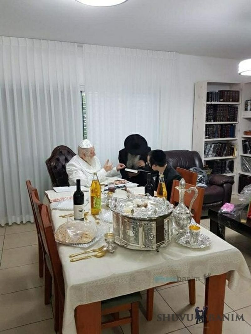 Photo Gallery of our Rebbe Eliezer Berland shlit"a at his holy table this Erev Pesach, 5781