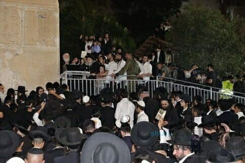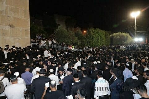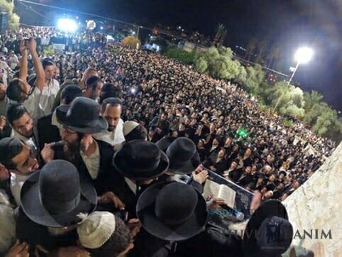 Immediately with the completion of the 7 Tikkun Klalis, Rav Berland shlitâa arrived at the grave and progressed towards the place that was prepared for him in front of the seventh step. With no pause or additional preparation, the Rav shlitâa continued with the saying of another 7 Tikkun Klalis with self-sacrifice and great arousal.