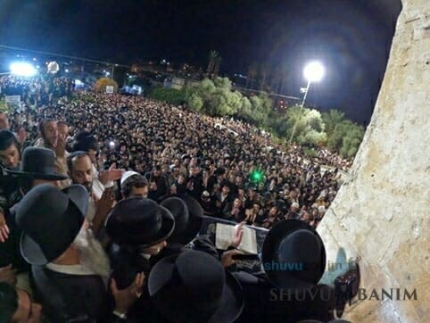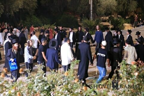 Immediately with the completion of the Maariv prayer in Jerusalem, with masses of people and the holy melodies of our Rebbe Rav Berland shlitâa and the holy community of Shuvu Banim, everyone left in the direction of Meâarat HaMachpelah in Hevron for the prayer gathering.
