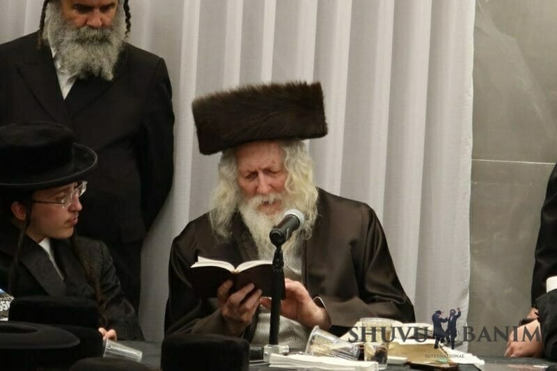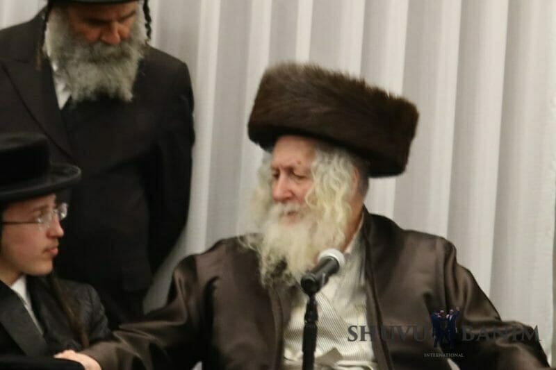 So, over the course of an hour, the Rav showered upon us his holy words. After an hour, he began to sing “Sameach Tesamach…,” singing for around an hour and fifteen minutes together with the entire congregation which arrived to take part in the celebration of these families of tzaddikim. Amidst the song, the Rav shlit”a wrote the