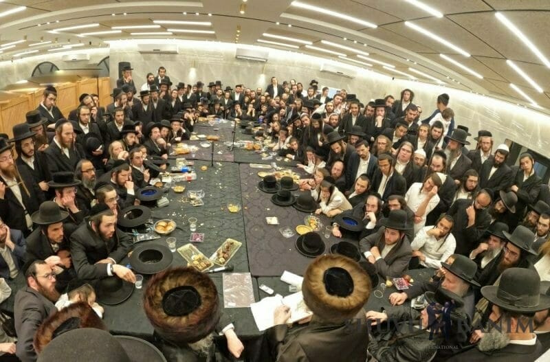 The engagement took place in the “Tov HaChesed” event hall in the Rama A’ neighborhood in Beit Shemesh, and at 12:45 am Rav Berland arrived, entering to the song “Length of days and years of life should be multiplied for you,” and the song, “Sameach Tesamach” and he sat down at his holy place at the table of honor. Immediately after the song, the Rav began giving over a fiery shiur about the level of bride and groom and of dancing and holy melodies. Below is a small section from the shiur: