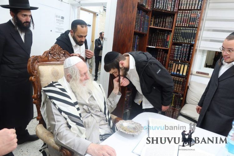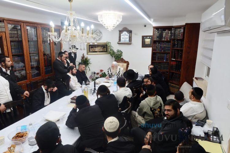 This yearâs gathering took place in the Ravâs home on the fifth night of Hanukah, the night of 29 Kislev. At 10:00 PM, the Rav shlitâa entered his holy home and immediately began a fiery shiur about the significance of the days of Hanukah. In the shiur, the Rav shlitâa addressed a number of topics. Among the topics which the Rav has discussed extensively over the last period is the question of the Ramban about why Yaakov cursed Shimon and Levi, despite the fact that Dinah had been abducted by Shechem and it was Shimon and Levi who freed her. During the course of the discussion, the Rav spoke about the kidnapping by haidamaks of the Baal Shem Tovâs daughter Adel and his assistant Rabbi Tzvi on their way to the Land of Israel. Afterwards, the Rav spent most of the shiur discussing the story of the miracle of Hanukah, which began with the rebellion against the Greeks, and how Matitiyahu didnât fear and shattered the idolatrous altar. He explained how the Maccabees succeeded in defeating the largest and most sophisticated army in the world. Afterwards, he spoke about Eliezer and his conundrums about the Tzaddik and how in the merit of being silent, he merited to see Yaakov and Esav and to understand that Esav was just a husk of Yaakov. At the end of the shiur, the Rav shlitâa encouraged the young men to marry early and not to wait until older ages, blessing everyone to merit to get married within the year, Amen! At the conclusion of the uplifting shiur, the young men passed one-by-one to receive from the holy hands of the Rav âHanukah geltâ â Hanukah money. The Rav shlitâa strengthened and blessed each young man individually according to his specific needs.