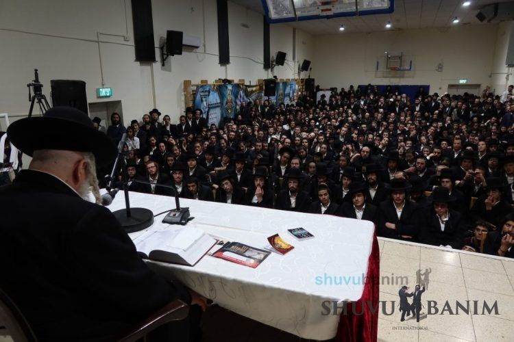 At 8:00 pm, the gates of the âKarl Netterâ Auditorium in Jerusalemâs Eretz Hafetz neighborhood opened. Hundreds of bachurim from Breslov Shuvu Banim slowly entered the hall to the sounds of the orchestra. After some time, the head of Kever Rachel Institutions, Rabbi Moshe Menachem Kluger shlitâa, ascended to the stage, encouraging the bachurim to be like the Maccabees, to merit to guard the pure oil and completely distancing themselves from all the plagues of technology, as forbidden by the Rav shlitâa and all Gedolei Yisrael.At 10:10 pm, with the emotional sounds of melodies, Moreinu HaRav shlitâa entered the auditorium. At length, he sat engrossed in his holy books and strengthened himself together with the bachurim with the emotional songs of Hanukah, in the Breslov melody which arouses every heart!Silenced filled the hall as the Rav shlitâa began his holy words to the hundreds of bachurim, words which come from the heart of the world and penetrate the heart of every bachur wherever he may be found. At the beginning of his words, the Rav shlitâa said that the war of the Maccabees was against the impurity of Greece, and today this is the smartphones and technological devices which are destroying every good aspect of a Jewish person. Afterwards, he spoke about the weekly Parshah regarding the dispute between Yosef and his brothers and how Yosef sat in prison. The Rav said that if a person has intelligence, he knows to utilized his time in captivity for spiritual elevation by learning Gemara and praying in isolation, and this is what Yosef did. Afterwards, he said that Parshat Vayigash is the most important Parashah, because this is the Parashah of the revelation of the Tzaddik â âI am Yosef.â He said that this year we merited that this Parashah coincides with the Hilulah of Rabbi Natan, something which is rare and occurs only once every 17 years.Afterwards, he returned to the subject of the dispute between Yosef and his brothers, who also had a dispute over the law of a limb torn from a living animal, whether it also applies to foul or only to animals, as is brought in the dispute between the Kreiti Pleiti and the Radbaz regarding the opinion of the Rambam. Afterwards, he brought the question of the Ramban on why Yaakov cursed Shimon and Levi not to receive their portion in the Holy Land when theyâre the ones who freed his daughter, Dina, from captivity. In connection with this, he said that also Rabbeinu Nachman was taken captive on his way to the Land of Israel by Philistines. And so too the Baal Shem Tov and his daughter, relating eloquently the story of the Baal Shem Tov and how he was saved in the merit of the letters of the Alef-Bet.After these words, he returned to the subject of the war against impure devices and said that all the apparent grandeur of âGreek cultureâ wasnât culture at all and only had the singular goal of contaminated the minds and hearts of the Jewish people, especially with the terrible desire. And this is the case with the technological devises which there are today.  The Rav shlitâa said that parents should instill in their children a repulsion for these forbidden devices so that their children will not want to come near them at all. He stated that this was the essence of Hanukah: to triumph over the culture of Greece â the culture of impure technology.The Rav shlitâa brought the words of Rabbi Natan in Likutey Halachot Choshen Mishpat, that every person is on the brink [of falling], only that he is âstruck with blindnessâ like those surrounding Lotâs house in Sodom, and a person needs to push away this blindness through breaking these devices and completely abstaining from them. At the conclusion of his words, the Rav shlitâa encouraged and instructed the bachurim to sign on a form committing themselves to not possess any forbidden device. He said that when a person accepts this onto himself, itâs as if he is shattering an idolatrous altar, like the high priest Yochanan did in front of the Greeks.At the conclusion of the shiur, hundreds of the bachurim in the group successively approached to receive âHanukah Geltâ from the holy hands of the Rav shlitâa, holy âHanukah money.â Meanwhile, hundreds of bachurim emerged in circles and dancing with immense joy, reveling in the merit of being amongst the Maccabees of their generation during the holy days of Hanukah.Afterwards, the Rav shlitâa returned to his holy home and the holy bachurim of the group returned to their places. These young men merited to witness a special presentation prepared with great effort. This was carried out by the heads of the group who merited to enter the Ravâs home several weeks ago to hear and receive guidance from the Rav shlitâa on how to abstain from these impure devices. True knowledge requires the truth of Torah. At the end of the presentation, the bachurim participated in the humorous âClickersâ program, which brought much laughter to the faces of the bachurim.