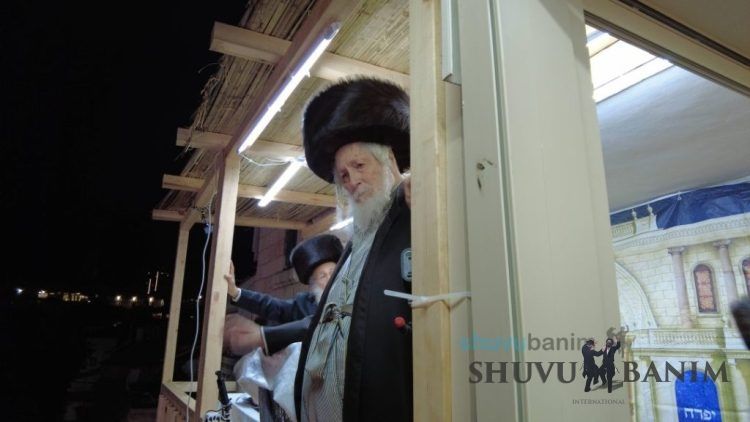 This year, the Hilulah took place in the courtyard of our Beit Midrash. Already from the time of the Maariv prayer of the night of the Hilulah, thousands of people from all over the country began filling the courtyard of the Prayer Hall. After the Maariv prayer, the chapters of Tehilim of Simchat Beit HaShoeva, and a shiur on the greatness of the Hilulah, Moreinu HaRav shlitâa announced that the central Hilulah would begin in the coming minutes. Indeed, a few minutes after the conclusion of the Maariv prayer, with the Ravâs entry into his holy home, the organizers of "Ichud Chasidei Breslov" ensured that the entire courtyard of our Beit Midrash was transformed into a place suitable for the thousands arriving for the greatest Hilulah in the world, in the presence of the living Tzaddik, together with this, fulfilling the mitzvah of greeting ones Rabbi during the festival. Even the balcony of the Ravâs home, was given a new appearance in honor of the occasion, with the Sukkah doubled in size so that all could behold the holy countenance throughout the Hilulah.Â