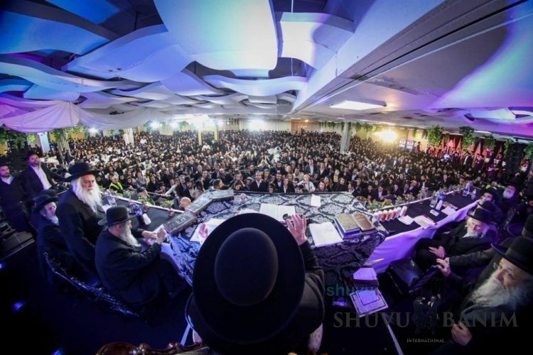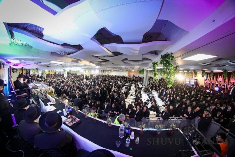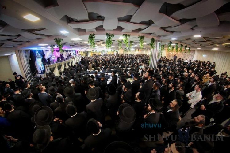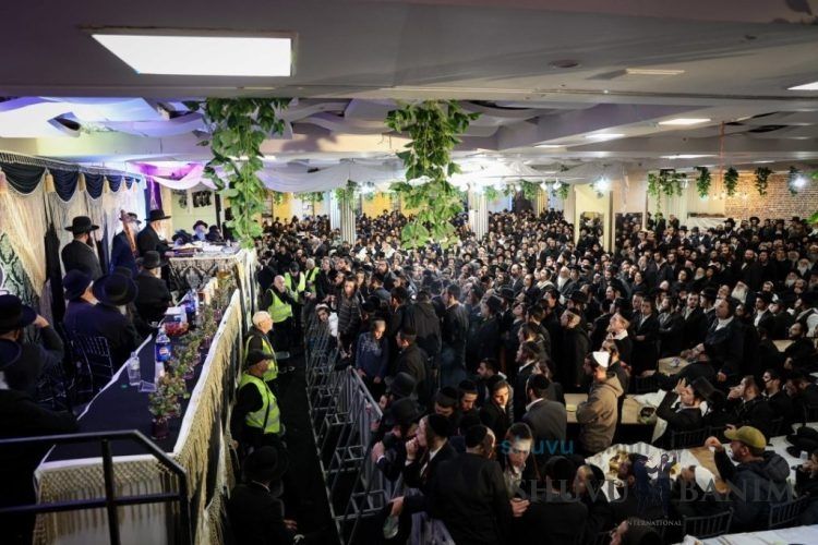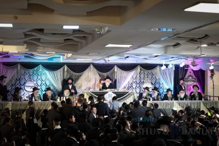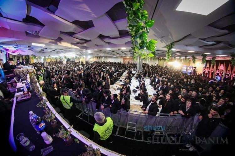 After Maariv, the crowds proceeded to the giant line of buses which filled Shivtei Yisrael Street, and the caravan departed for the Pavilion events hall. Thousands and thousands, from all sectors â men, women, and children â all gathered and came in their masses to the entrance to the events hall. For the thousands was waiting a feast of gratitude for the awesome miracles that we merited three years ago the day after Rabbi Natanâs Hilulah â the return of Moreinu HaRav shlitâa to his holy home after two years of concealment of the light of the Tzaddik, who was held captive in the hands of the evil empire. We must note the dedication of Rabbi Binyamin Dafan, who organized the feast of our community, with delicacies in abundance.âAnd it was that when the musician began to playâŚâ â Leading Chasidic musicians in unprecedented musical production