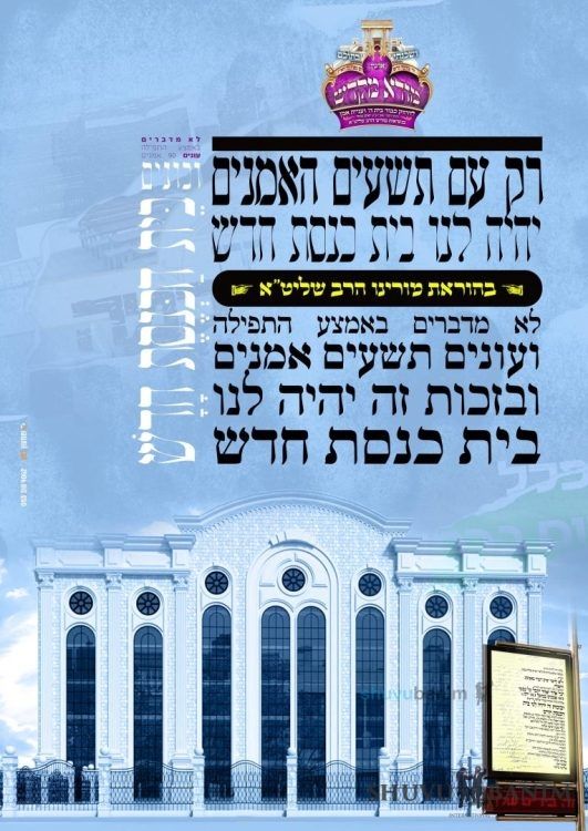 In recent weeks, the “Mora Mikdash” Institute, established by our holy community, launched a campaign following a letter of chizzuk from Moreinu HaRav Eliezer Berland shlit”a, who writes that in the merit of guarding one’s speech in the synagogue and through answering ninety “Amen”s every day until Simchat Torah, we will have a new synagogue, bezrat Hashem. Here is the full letter: