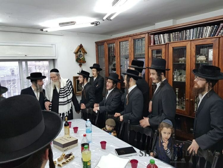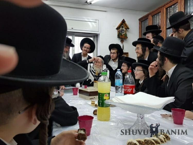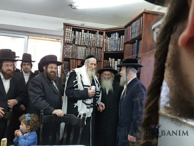 We'd like to wish a hearty 'mazal tov!' to Rav Eliezer Berland, shlita, on the occasion of the engagement of his grandson, Rabbi Shmuel Isaac, son of Rabbi Nathan Rubinstein, to the daughter of Rabbi Binyamin Zeev Yakobson from Kiryat Sefer. Below, we're very pleased to be able to share a selection of photos where Rav Berland celebrates the news with some of his younger followers: