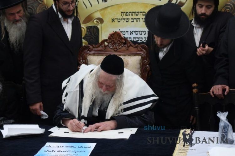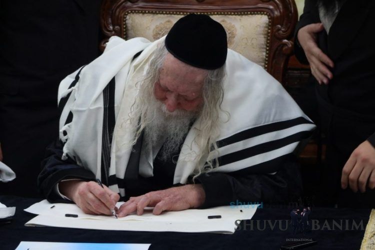On the day of the kingâs birthday celebration â last Thursday, 23 Tevet â the day in which the soul of the Tzaddik of the generation, Moreinu HaRav Eliezer Berland shlitâa, came down to the world, the Rabbis of the community gathered together with the participation of Moreinu HaRav shlitâa for the occasion of the writing of the Torah scroll in honor of the Tzaddik and in memory of those murdered in the Simchat Torah War.