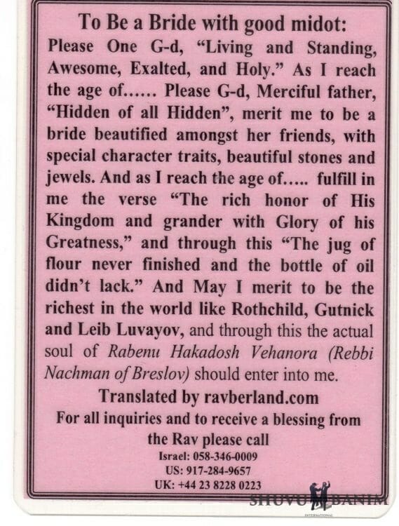 ← Back to ArticlesPrayer To Be A Bride With Good MiddotJune 26, 2019Prayer to be a bride with good middot - Rabbi Eliezer Berland ← Back to All Articles