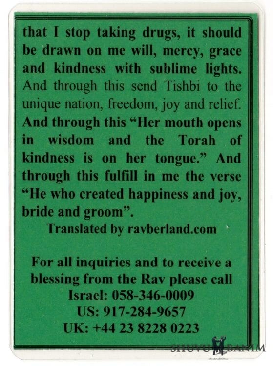 ← Back to ArticlesPrayer To Merit To Stop Taking DrugsJune 26, 2019Prayer To Merit To Stop Taking Drugs - Rabbi Eliezer Berland ← Back to All Articles