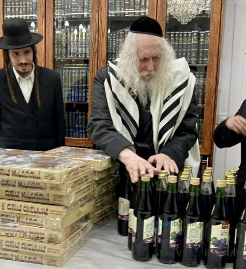 R' Eliezer Berland Shlit"a Blesses Wine and Matzas for Families of "HaBen Yakir Li"