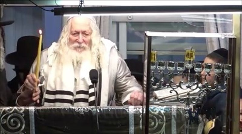 Rabbi Eliezer Berland Shlit"a Lighting Candles on First Night of Hanukah