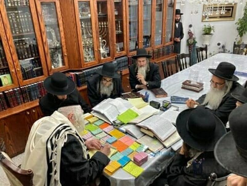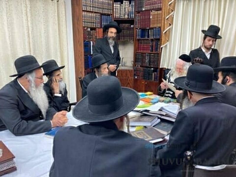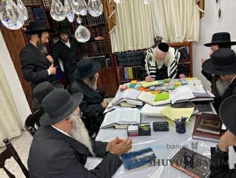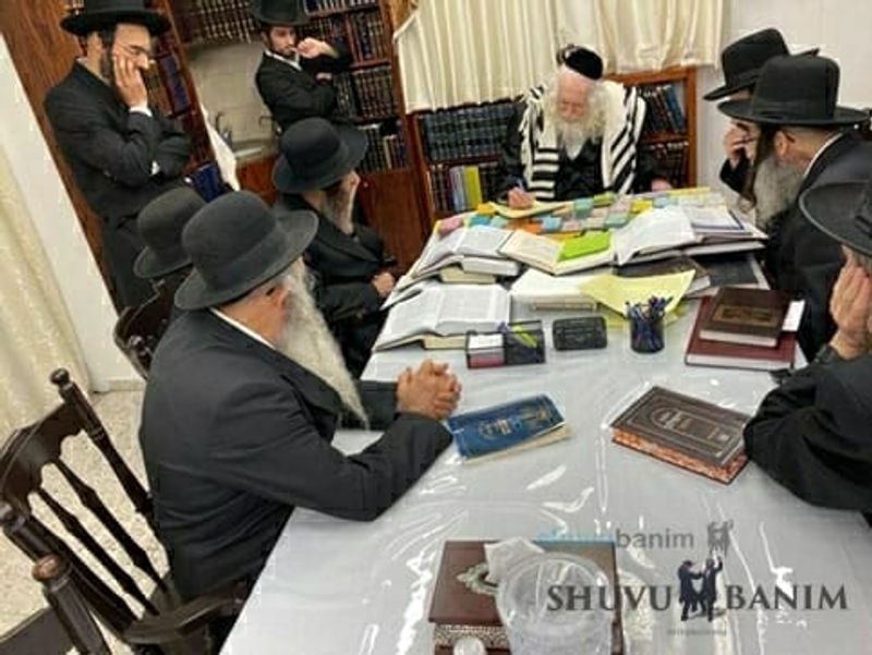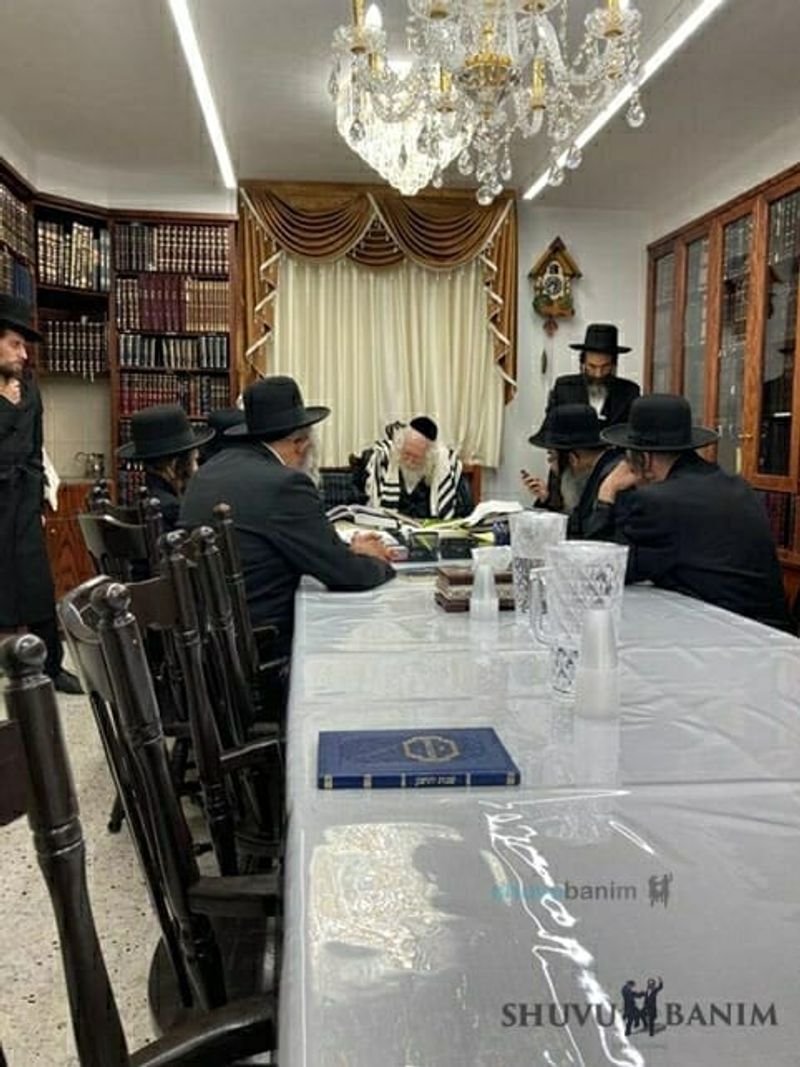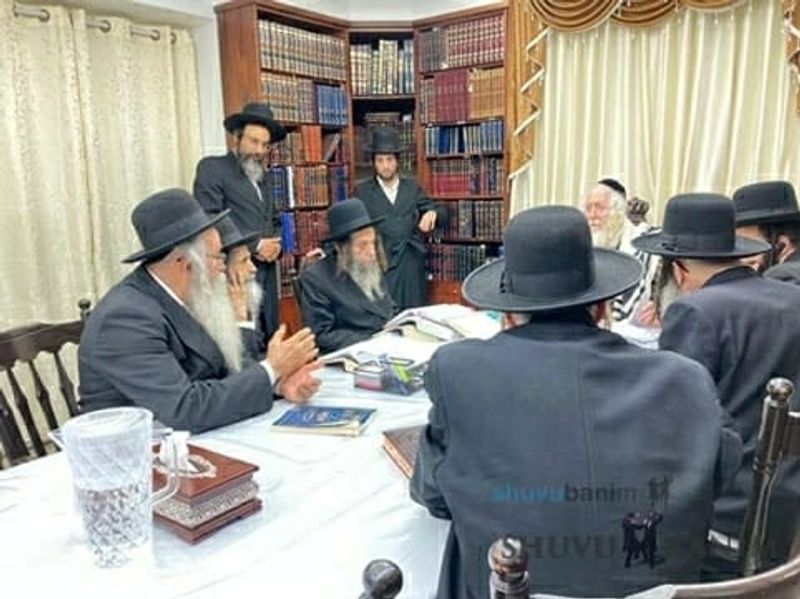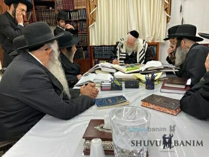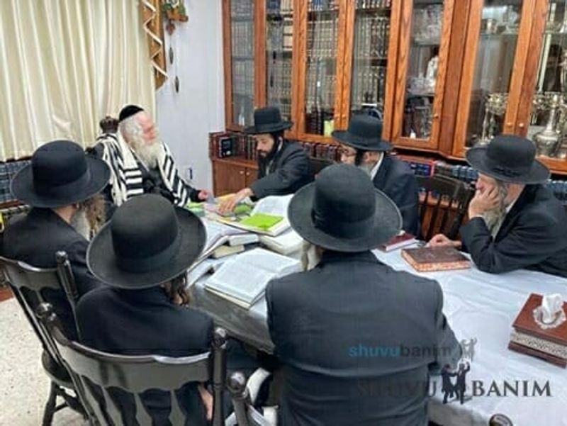Members of the Rabbinic Council of the holy community of Shuvu Banim gathered for consultation with our Rebbe, the Gaon and Tzaddik, Rabbi Eliezer Berland shlit”a.