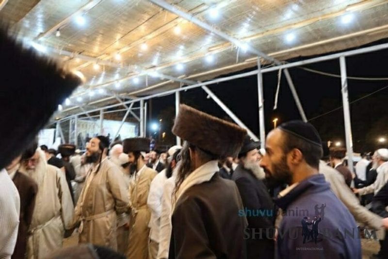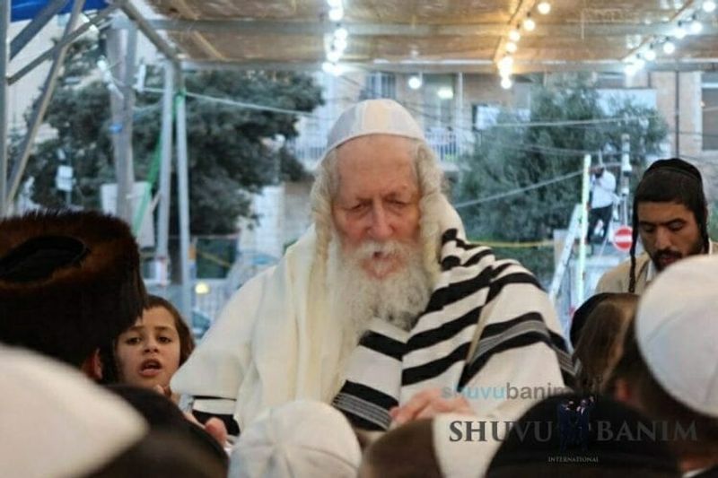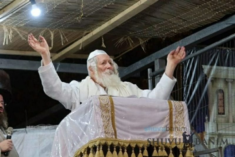 On Simchat Torah day, the Rav came out at 5:15 in the morning from his house in the direction of the giant tent, with the community escorting him. On the way, the Rav began the song “Baruch Hu, Elokeinu…” After about ten minutes of walking, the Rav arrived at the giant tent and immediately began Tikkun Chatzot from “Ura na” and “Shaarey Tzion” as is customary on Shabbat and Chagim. Afterwards, the morning Zemirot with great vitality and arousal, korbanot, Shacharit like on every Shabbat and Chag, dwelling on the songs “Hoshea et amechah” and “HaNechmadim m’zahav” and “Ki kol peh lecha yodeh” in Nishmat Kol Chai. Afterwards, Shema Yisrael, and the Amidah. After the repetition of the Amidah, the Rav said the blessing for Hallel and began singing Hallel with awesome enthusiasm, close to an hour. Afterwards, the Rav made kiddush and gave a short shiur about the greatness of dancing during Simchat Torah, that dancing on Simchat Torah is higher than the prayers of Rosh Hashanah. He then announced a break so that the entire community could have an aliyah to the Torah. The Rav left the tent and entered an apartment which was prepared in advance so that he could rest. Because of his great weakness, the long walk, and his medical situation, the Rav didn’t come out for Hakafot. Only at 1:15 pm, he left the apartment for the tent and made seven hakafot around the bimah. Afterwards, because of the late hour, he began saying “Yizkor” and afterwards the Musaf prayer, which lasted for more than a half-hour, with him singing “vekarev pezureinu” and “vehavieinu l’Tzion Eirechah,” with the giant community of close to a thousand people singing together. This was followed by Tefilat HaGeshem, the prayer for rain, with arousing melodies. After the prayer began the Torah reading. [caption id="attachment_24057" align="aligncenter" width="750"]