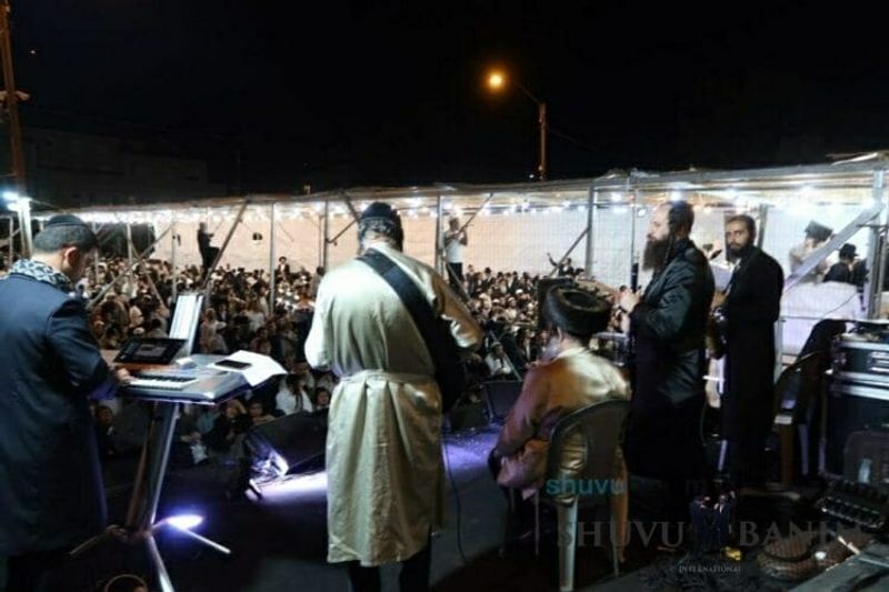 The legendary Shuvu Banim band during Hakafot Shniot -- Photo credit: Machon Keren HaTzaddik[/caption]