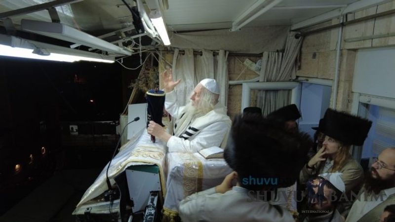 At 9:00 pm, the Rav shlit"a emerged from his room and walked towards the Plaza which was full of thousands who waited for the evening prayer of Simchat Torah. The prayer began with a shortened Kabbalat Shabbat, as is customary when it coincides with Yom Tov; however, as is known by everyone, by Rav Berland shlit"a, the idea of "short" isn't relevant, and the Rav shlit"a sang Lechi Dodi for nearly an hour. After Kabbalat Shabbat, he began the Ma'ariv prayer of Simchat Torah, with niggunim and great vitality. At the conclusion of Ma'ariv, the Rav shlit"a opened up with the Mizmorim of the Hakafot, "Atah Horeita L'Da'at...," and then began the good times: over a period of hours, the Rav shlit"a danced back and forth in the Kotel Plaza together with thousands of people. The dancing was with such vitality, such fervor that it's indescribable. One of the pinnacles was when the members of the community opened up the giant circle in the middle of the Kotel Plaza, and the Rav shlit"a danced back and forth in the midst of the giant circle. Likewise, in every Hakafa, the Rav shlit"a paused and read the verses and sang niggunim with awesome vitality in honor of the Torah. It is worth noting that during the Hakafot, a number times the Rav shlit"a approached the stones of the Kotel and whispered a silent prayer. A number of people who stood near the Rav shlit"a relate that they saw his holy eyes shed tears. The Rav shlit"a saw the future that was about to happen and requested mercy in the midst of the Hakafot in order to sweeten the harsh judgments from the Jewish people. At the conclusion of the Hakafot, the Rav shlit"a read in the Torah, and was honored with Aliyah of "Kol HaNe'arim." In leaving the Kotel, he turned to return home amidst singing and dancing. For a portion of the way, the Rav shlit"a sang the Zemirot of Shabbat evening -- Shalom Aleichem, Ribbon Kol HaOlamim, and Eshet Chayil. After the Zemirot, the Rav shlit"a sang "Ura Kevodi, Ura HaNevel V'Chinor, A'ira Shachar..." Only at 1:00 am at night did the Rav return to his home.Hallel in the shadow of missile alarms