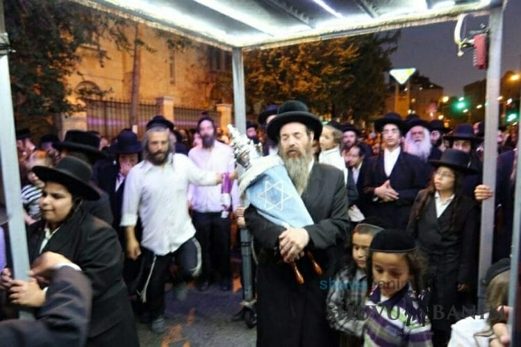 [caption id="attachment_23452" align="aligncenter" width="750"] Torah scroll procession in the streets of Jerusalem[/caption]