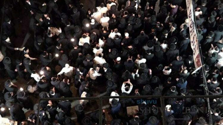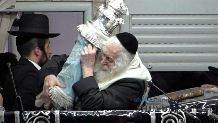 [caption id="attachment_23453" align="aligncenter" width="750"] Rav Berland shlit"a receives the new Torah scroll in his holy hands and begins dancing after Maariv[/caption]
