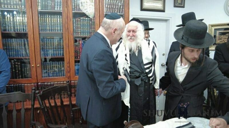 The Rav shlit"a blesses the donators of the Torah scroll[/caption]