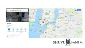 The bottom of the island of Manhattan of NYC where Wall Street and the financial district is located.