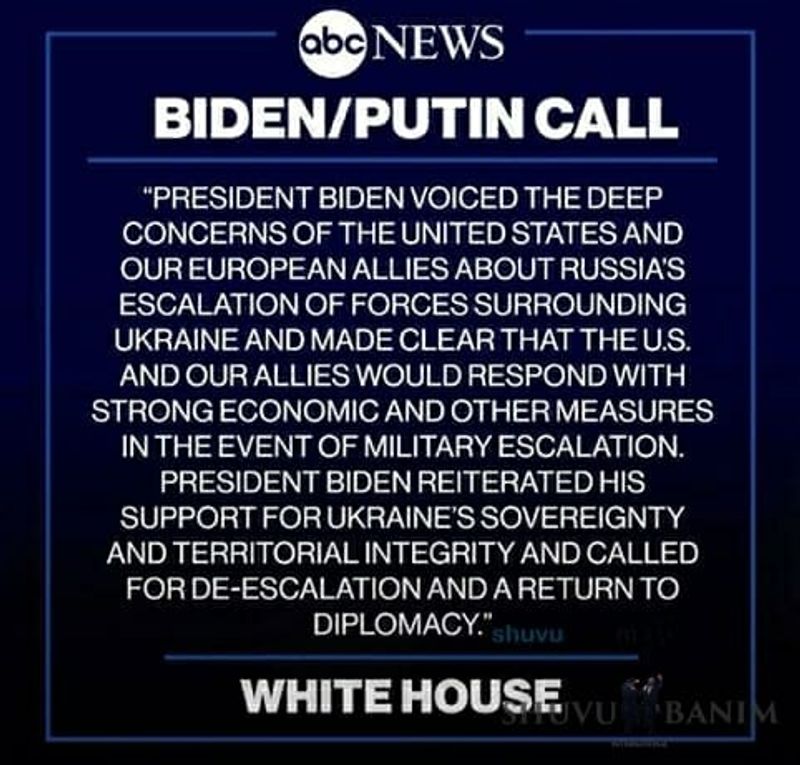 A message from the White House that the US is prepared to assist the Ukraine against Russian aggression: