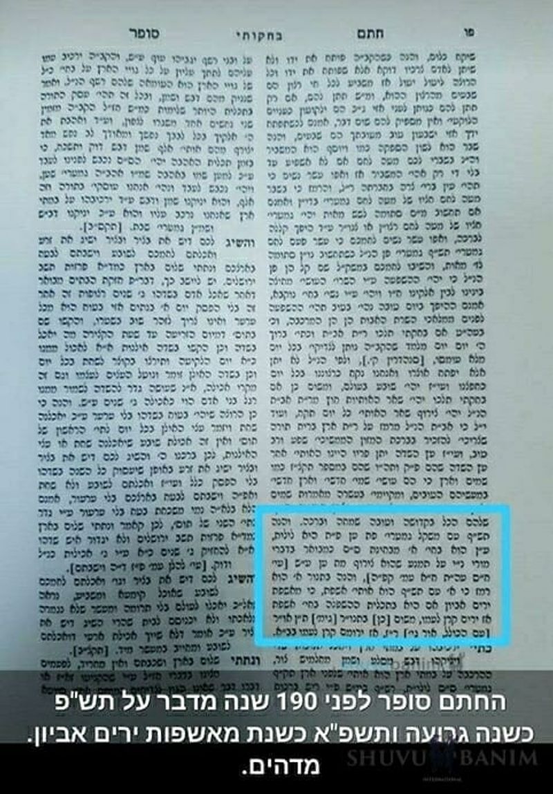 Rabbi Yoshiyahu Pinto, shlita, head of the Shuva Yisrael institutions and Av Beit Din of the Jewish community in Morocco, mentioned in one of his latest shiurim the words brought above from the Chatam Sofer, and added a sharp twist to them. Here are his holy words: "Now is the month of Elul. What are we and what is our life? Thereâs a terrifying Chatam Sofer, a frightening Chatam Sofer [commentary]. The Chatam Sofer said that this year, the year 5780 would be a satanic year, and that the year 5781 would be the year of the Moshiach,â explained Rav Pinto. Rav Pinto continued: âItâs not just some Rav saying this, weâre talking about the Chatam Sofer. You should know that our grandfather, the Baba Meir, was strict about reminding his grandchildren, great-grandchildren, and great-great grandchildren â the Baba Meir didnât use to move from the writings of the Chatam Sofer.====